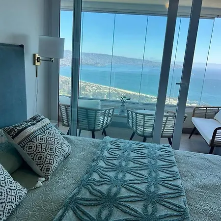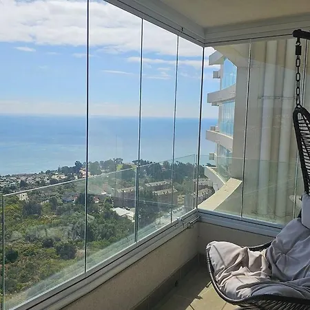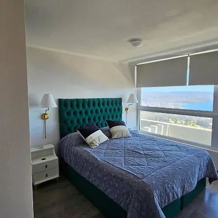 2-slaapkamer Exclusivo Dpto. Con Vista Al Mar Appartement ligt in het strandgebied van Vina del Mar en biedt een binnenzwembad en een terras. Het strand appartement ligt op 15 km van Vina del Mar luchthaven.
